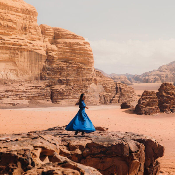 La aproximativ o ora distanta, am ajuns in Wadi Rum, supranumit pe buna dreptate „Valea Lunii”. Ceea ce am gasit acolo nu poate fi descris in cuvinte simple – doar trait. Desertul rosiatic, formatiunile de piatra colosala, linistea absoluta… totul parea desprins dintr-un film. Nu e de mirare ca aici s-au filmat productii precum Lawrence al Arabiei si The Martian. Am facut un scurt safari cu jeep-ul, dar in cateva ore abia am zgariat suprafata acestui loc magic.